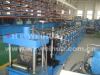Technical parameter: 1) Manual decoiler: passive uncoiling, manual expanding 2) Weight capacity of decoiler: 5T 3) Machine stand: adopts welded steel structure with shot blasting treatment 4) Locating of movable station: fixed by square key and screw 5) Bearing of fixed station: taper bearing installed in pairs 6) Stand type for guide feeding: side trolley type 7) Type of main forming machine: single station with chain for transmission 8) Specification of single station: WHPF35 9) Diameter of roller shaft: 60mm 10) Chain: 16A 11) Motor power of main forming machine: 5.5kw 12) Forming speed: 10m/min 13) Roller station: 17 stations 14) Material of roller: high-grade 45 forged steel 15) Surface of roller coated with chrome of 0.05mm thickness. 16) Motor of hydraulic station: 3kw 17) Hydraulic oil pump: gear pump CB-E314 18) Cutting: hydraulic cutting 19) Material of cutting blade: Cr12 20) Heat treatment of blade: HRC58°-60° 21) Thickness of material: 0.6mm 22) Width of steel coil: 308mm 23) Tolerance of cutting length: ±2mm 24) Transducer: Hongquan 25) Computer adopts PLC, Omron 26) Working pressure of hydraulic system: 12Mpa 27) Computer adopts Thinget OP320A 28) Output table: roller-type table Technical process: Passive uncoiling → feeding with guide → roll forming → straightening → cutting into length → output with table